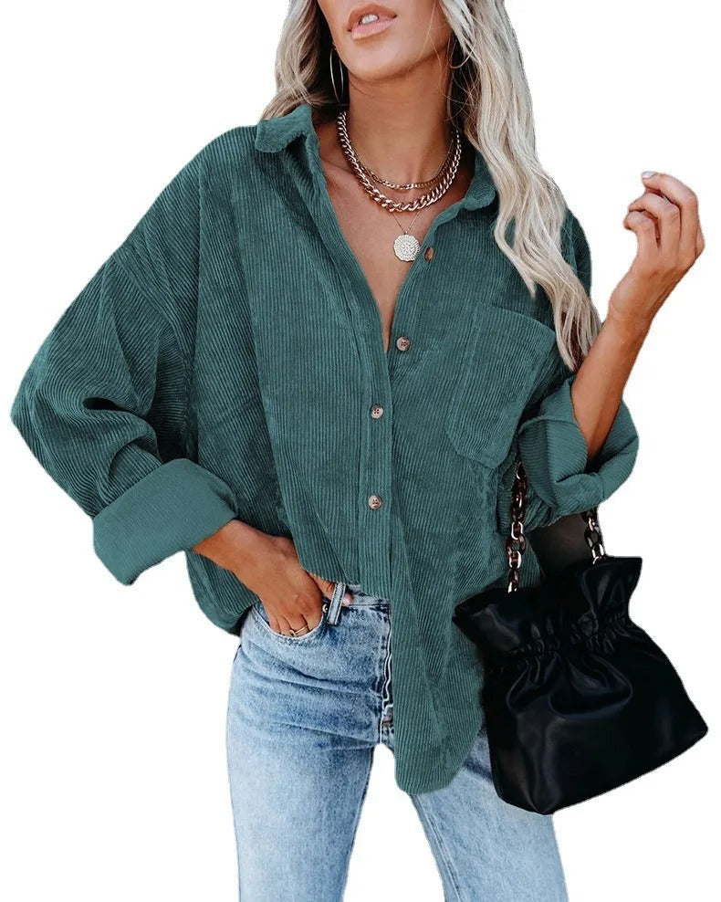Onze Agusta Overhemdjas biedt de perfecte combinatie van comfort en stijl. Deze losvallende ribfluwelen blouse met knoopsluiting en borstzak is ideaal om moeiteloos een trendy, casual look te creëren.