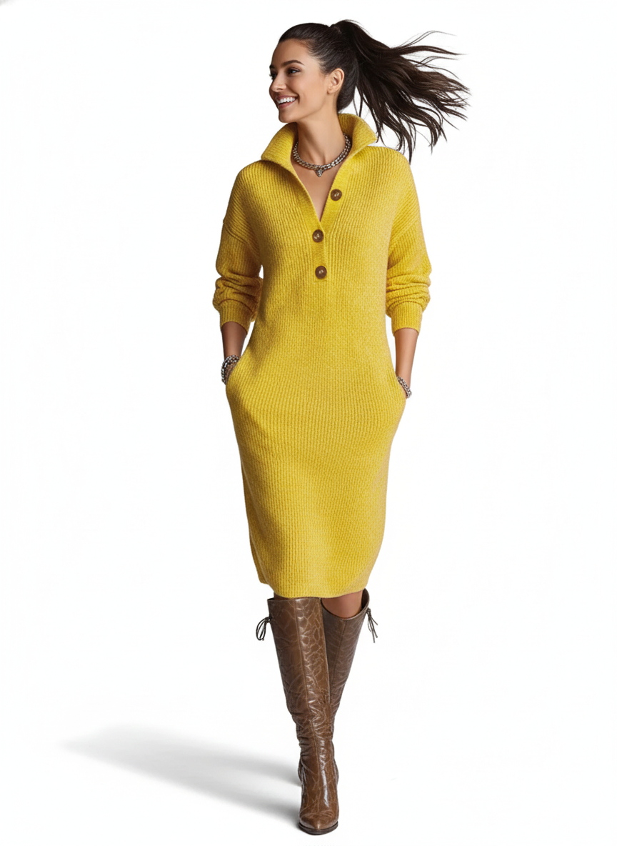 De jurk zit precies zoals beschreven en voelt comfortabel aan. Ideaal voor zowel werk als een avondje uit.