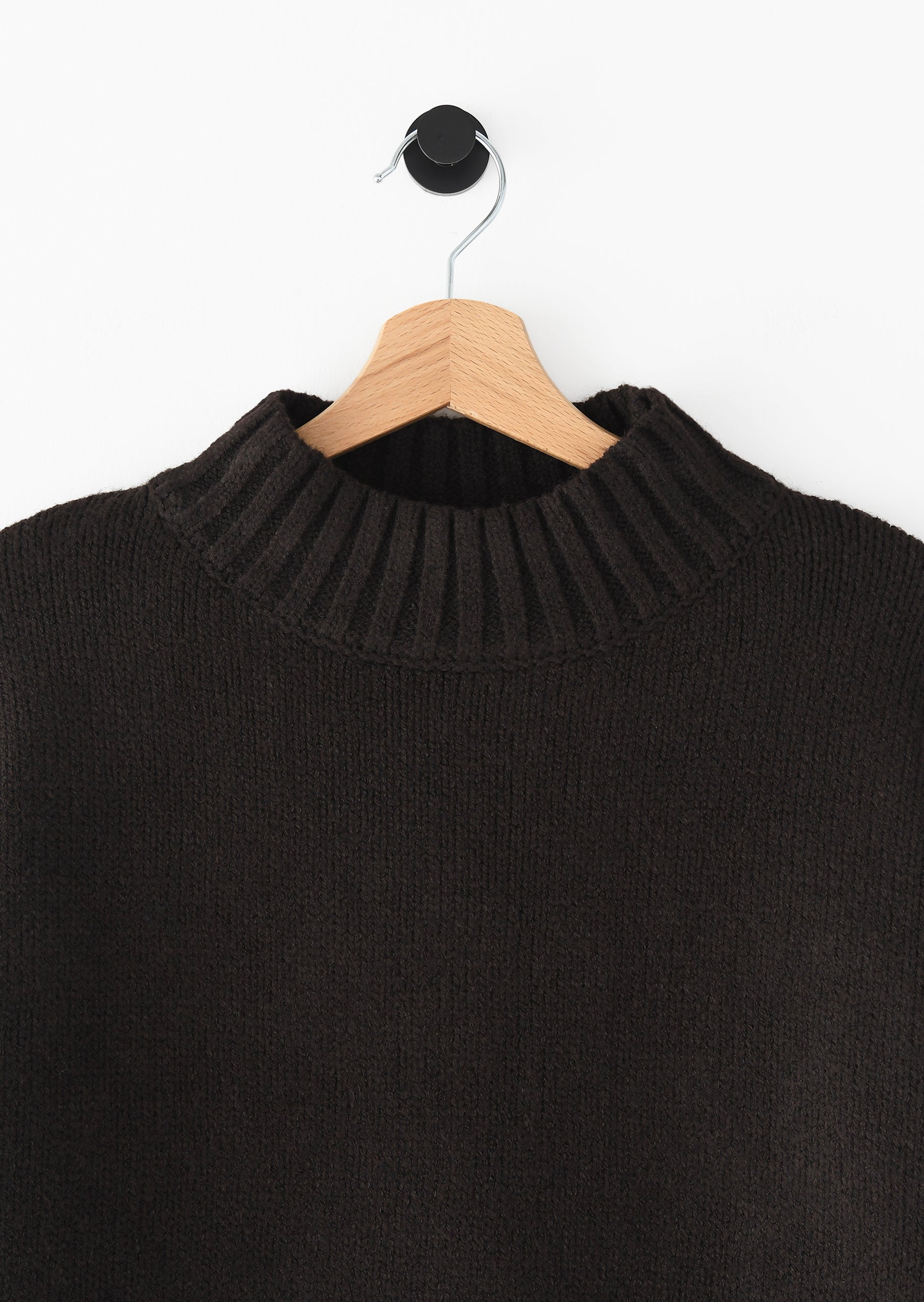 The kind of knit you’ll want on repeat: a high neckline, ribbed details and a cozy thick knit texture that feels as good as it looks.