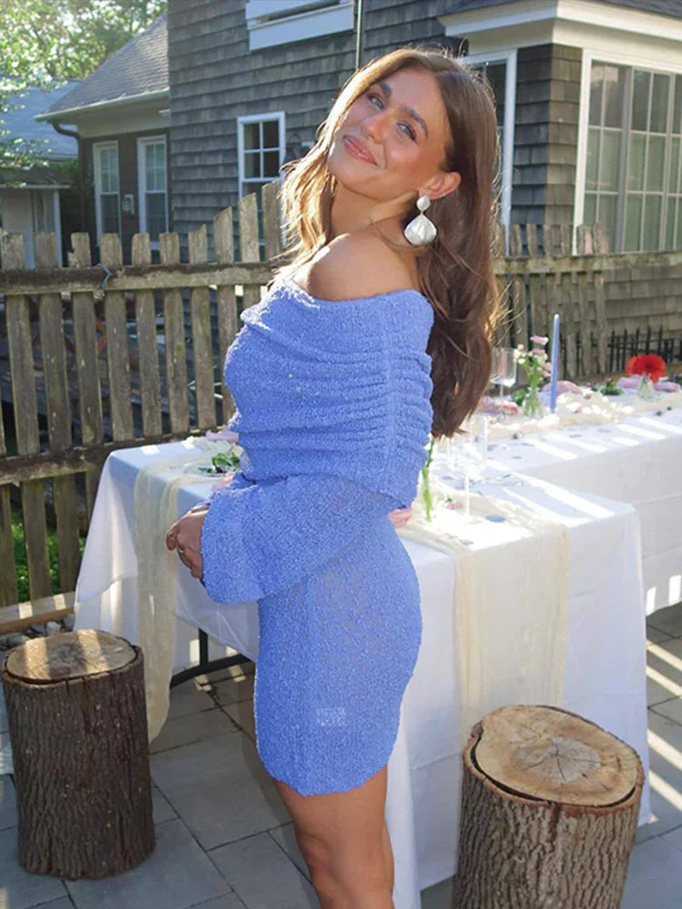 Theressa | Off-Shoulder Mini-Jurk met Verleidelijke Textuur